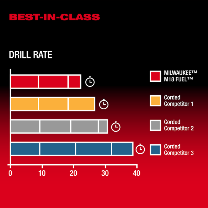 - 45mm max drilling capacity with up to 150mm core bit capability