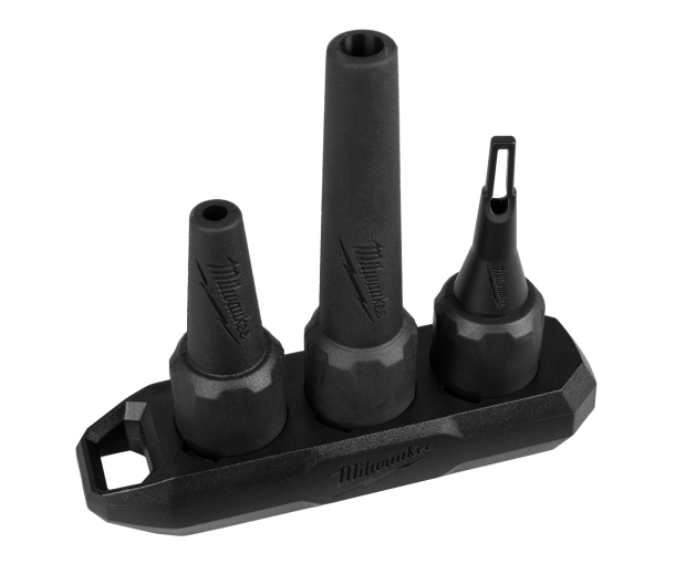 • Interchangeable nozzles (6 mm, 10 mm, inflator) with magnetic holder.